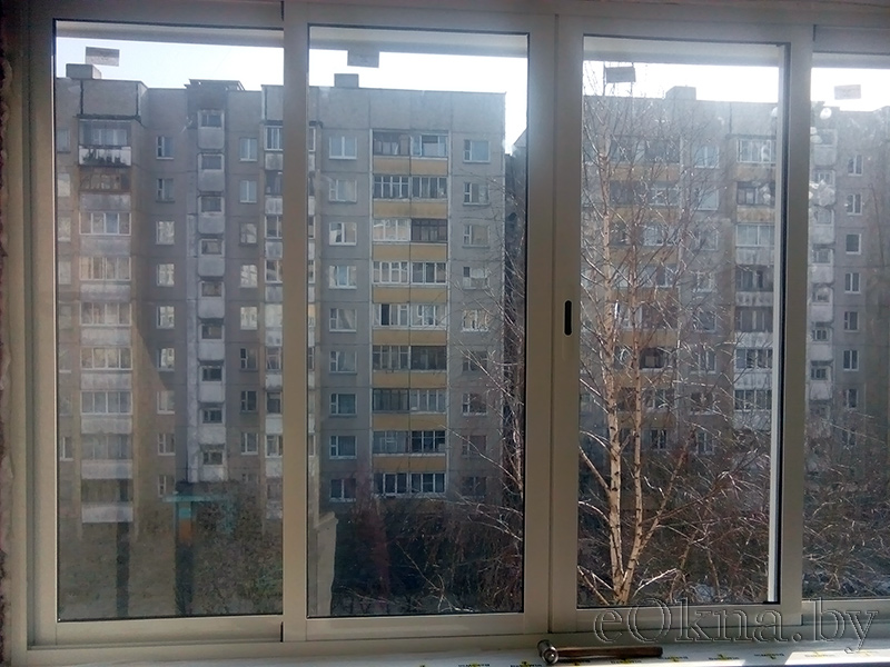 -раздвижная система створок, они движутся по направляющим в плоскости рамы (при открывании не занимаю пространство на балконе как распашные рамы);